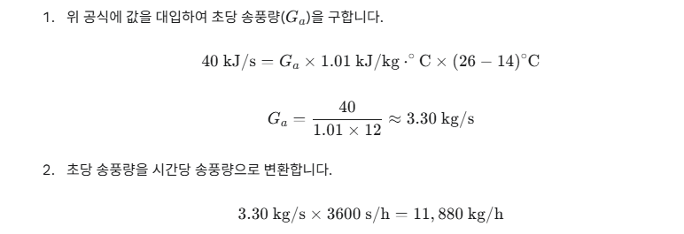 - : 실내 현열 부하 = 40 kW = 40 kJ/s
