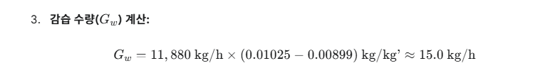 - 답: 감습 수량은 15.0 kg/h 입니다.
