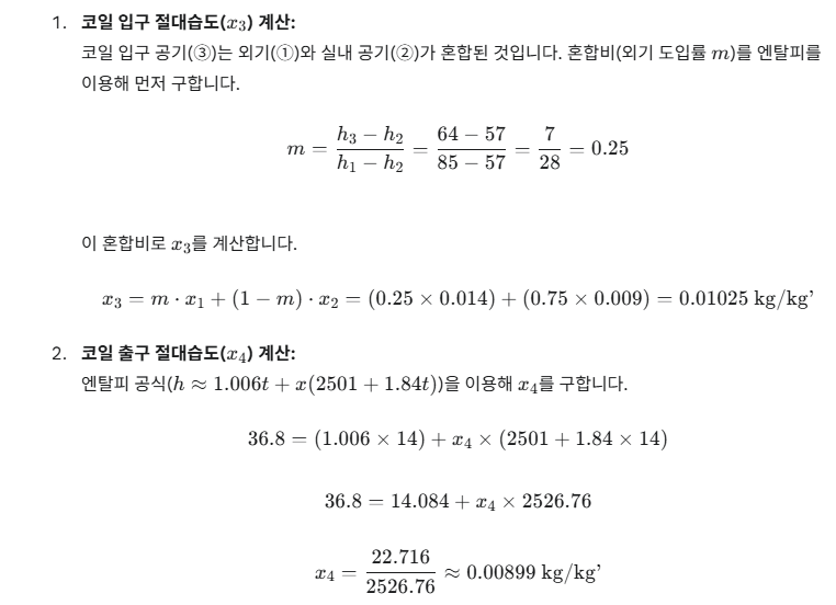 - : 코일 출구 공기 엔탈피 = 36.8 kJ/kg